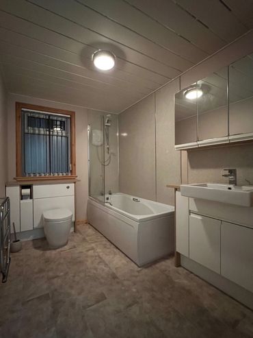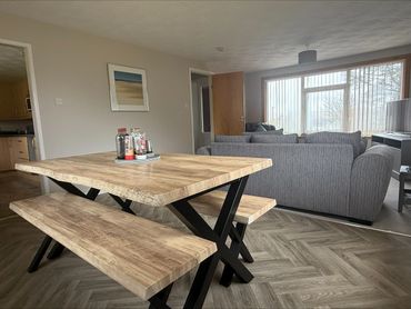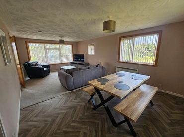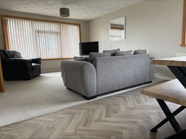 There is a spacious open plan living room and dining area recently installed kitchen featuring a built in oven, hob and fridge.